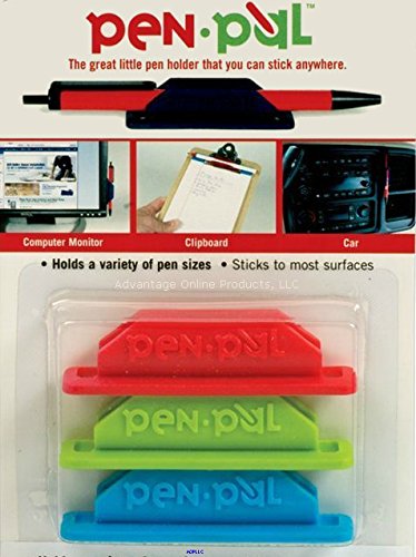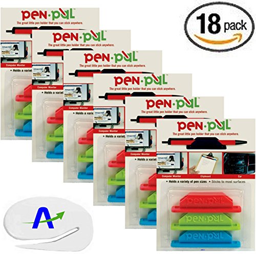 18 Pack Value Bundle Pen Pal Self Stick Pen Holders, Assorted Colors with Bonus AOP Letter Opener. 6 Individual Packs of 3, Colors May Vary (PENPAL-BP3-6)
