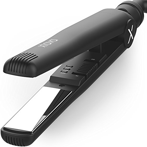 TITANIUM FLAT IRON : 1 inch titanium plates with 60 second rapid heat up, 60 minute auto shut off, and 3 heat settings from 340 - 450 degrees