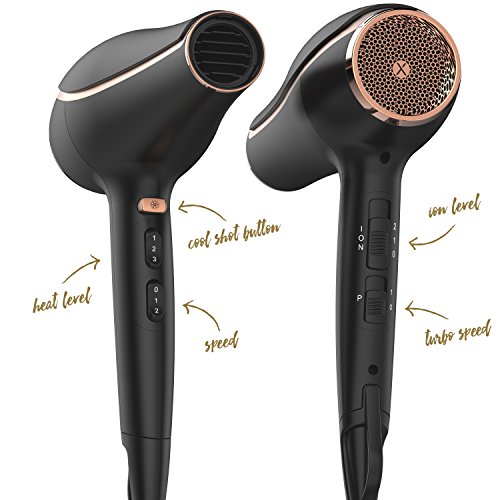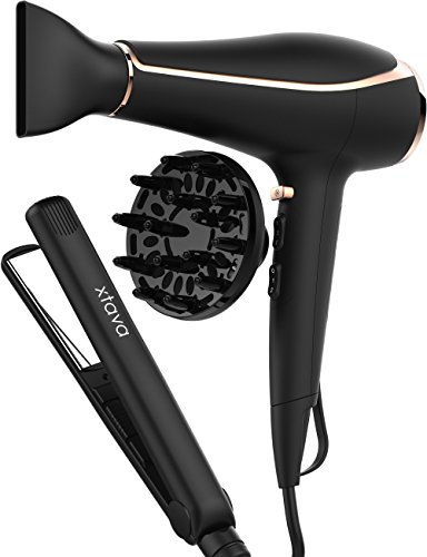 xtava Double Shine Hair Dryer with Flat Iron - Professional Ceramic Blow Dryer with Diffuser Best for Curly Hair and Nozzle Attachments Great for Travel Blow...