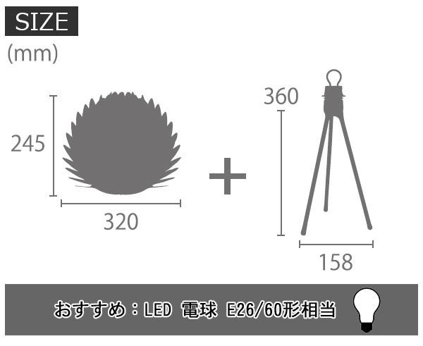 | 仕様 | 組立式 定格電圧:100V 50/60Hz 点灯:中間スイッチ(コンセント) 電球:E26/60形相当(LED/1個)※別売 |