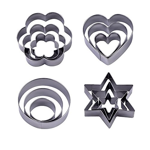 12PCS Stainless Steel Cookie Cutters,Metal Cake Vegetable Fruit Biscuit Cutters Molds by Easonove