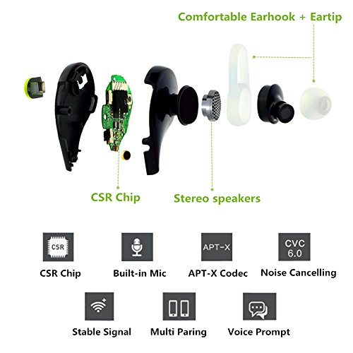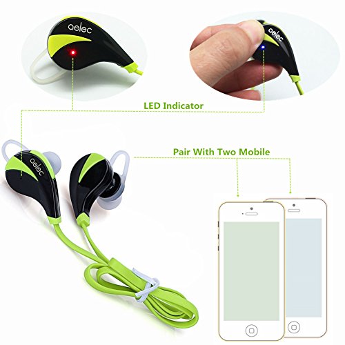 -. Feature : Advanced Technology: Bluetooth 4.0, CVC6.0 noise cancelling technology and APT-X tech ensure high-fidelity stereo music and clear speech within 10 meters. Invisible nano-coating technology protect earbuds against sweat during running and workouts. / Innovative 1 = 2 Function: receive calls on two phones via 1 set of aelec® bluetooth earphones, never miss one call from your phones when you are working or exercising! / Simple-to-use: Simple user friendly interface design on one of the earphones allows you to adjust volume, play/pause, Mute, switch songs and answer/reject calls, last number redial effortlessly. / Universal Device Compatibility: Compatible with iPhone 6/6s,6 Plus/6s plus, 5 5c 5s 4s,iPad Air, Samsung Galaxy S6,S5,S4,S3 Note 4 3, HTC M9 M8 M7, LG Flex 2 G3 G2, and Other Bluetooth enabled Android IOS Smart Cell phones/Devices / What You Get: Wireless headphone, user manual, charging cable and 5 pair different sizes earbuds. All aelec® products come with life-time hassel-free warranty, along with friendly customer service.