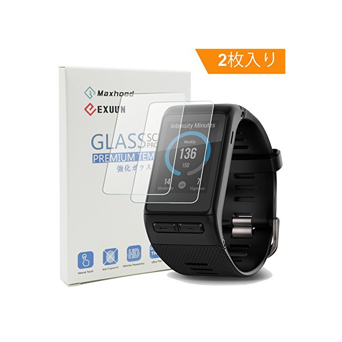 원본상품명: 【Maxhood】(2枚入り) GARMIN(ガミン) Vivoactive J HR 化ガラスフィルム, 9H硬度 0.3mm 超薄型 2.5Dラウンドエッジ加工 ウォッチ指紋防止 泡防止 高