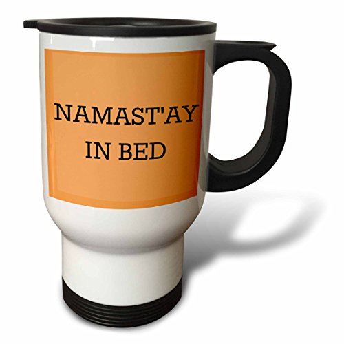 3dRose tm_213481_1 Namastay in Bed, Black Lettering on an Orange Background Travel Mug, 14 oz, White