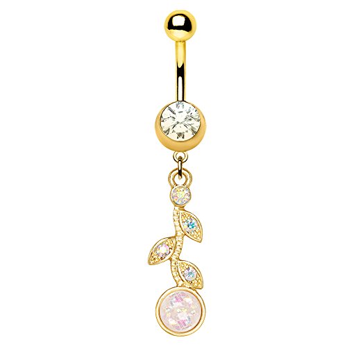 (Cocobul Body Jewelry)/Accessories/Belts Buckles/DIRECT FROM USA/Gold Plated Synthetic Opal Flower Vine Dangle Belly Button Navel Ring
