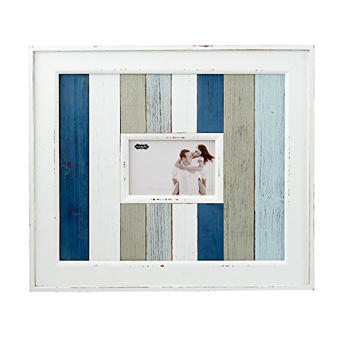 Mud Pie 4695414 Planked Wood Blue Gray Striped Beach Frame 4" X 6"