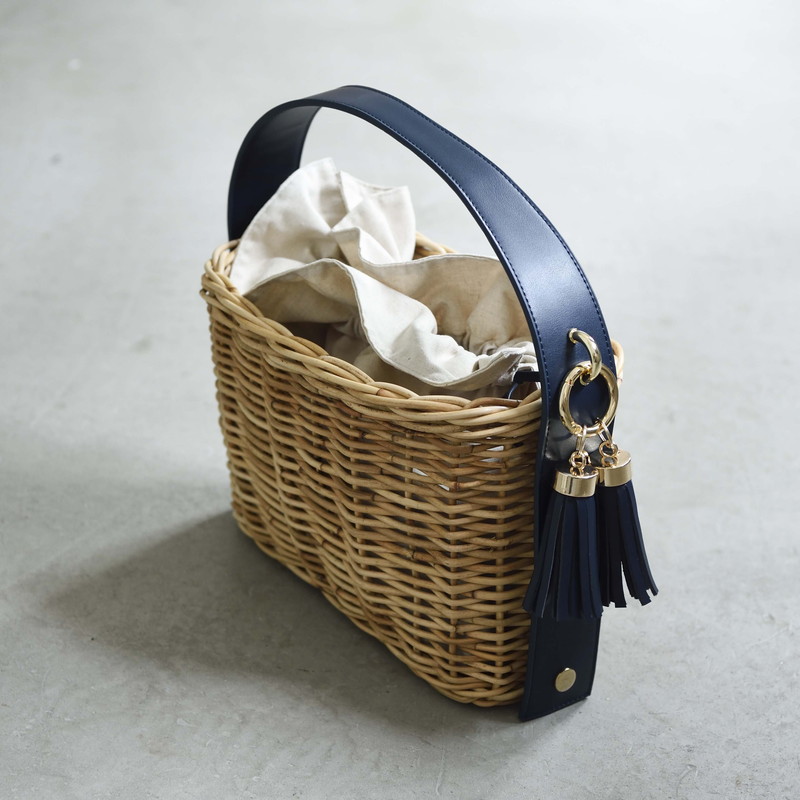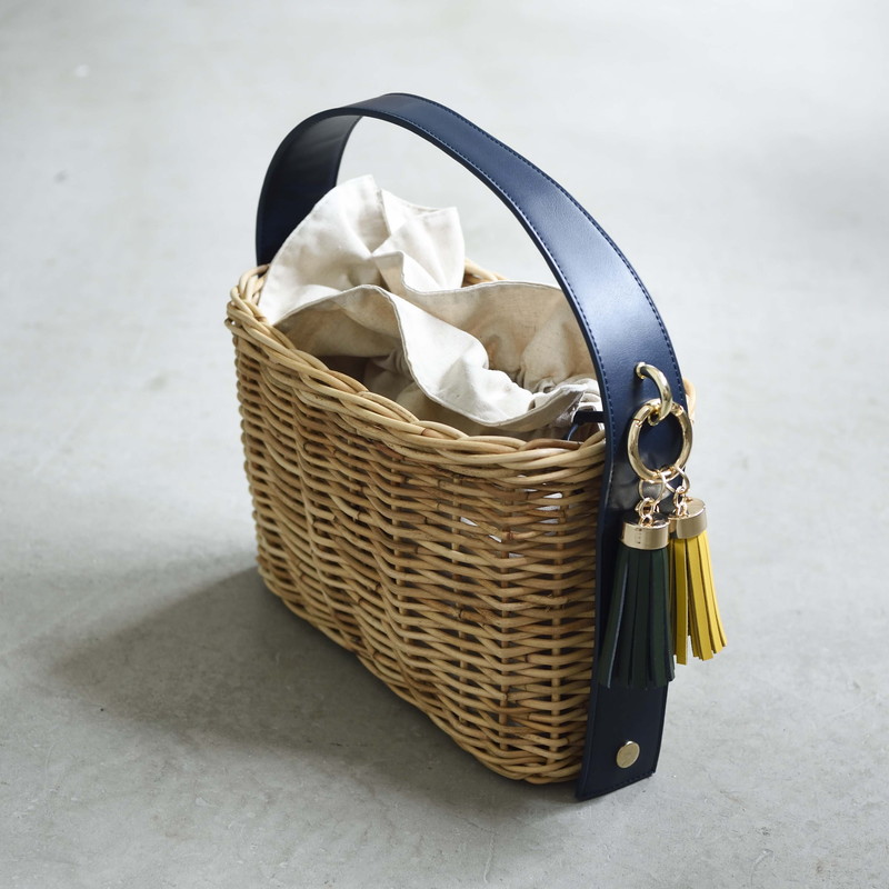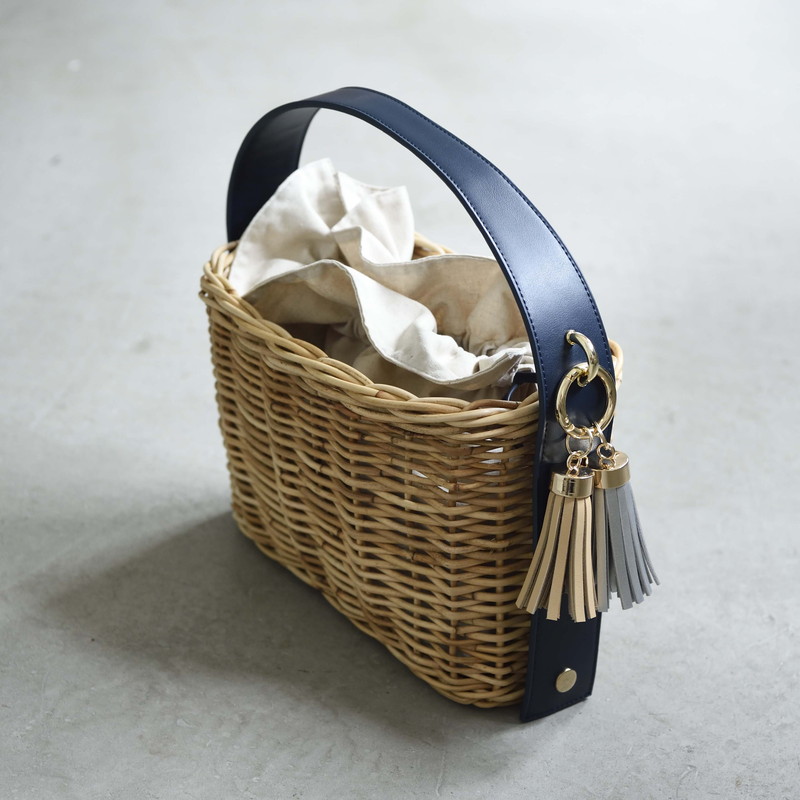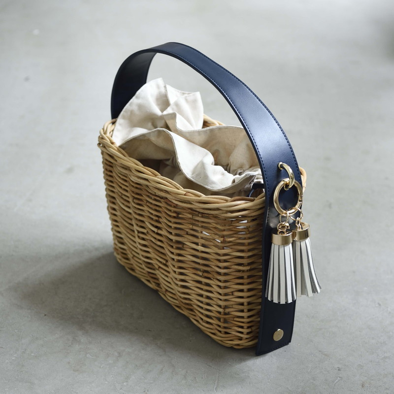 [ Rectangle-Basic ]AMONGOUT の象徴でもあるラタンバッグ、2018年 春夏は4種類の形をご用意しました。こちらの形は、初代から人気で毎シーズン問い合わせの多い、四角型のベーシックなサイズを新たなデザインで復活しました。容量もしっかり入り、形も使いやすいアラログのラタンバッグに、上質な帆布のバッグを被せて使用できるデザインとなっております。帆布バッグを外して付属の革ベルトの持ち手に付けかえれば、かごバッグだけでも使用可能なので、春夏らしい涼しげな印象でお使い頂けます。革ベルトには、タッセルチャームを取り付け可能です。帆布バッグには、太めで高級感のある羊革のロープ状の持ち手がついており、中袋を入れ替えて帆布バッグのみでもご使用頂けます。中袋には内ポケットもついており機能的で、巾着部分の紐も羊革を使用し高級感のある仕様となっております。※今シーズンから、ラタンバッグの持ち手の革ベルトが全型共通のサイズとなりました。他のデザインのお色の違う持ち手を付け替えたり、来シーズン以降の持ち手を取り付けることも可能となります。[サイズ]本体:W30cm × D14cm × H20cm底面:W26cm × D11cm[商品の特性について]AMONGOUTの商品は天然素材でつくられているため、商品によって色合いやサイズが若干異なる場合がございます。1点1点、心を込めて職人さんの手作業でお作りしております。繊細な作りとなっておりますのでご了承にの上、ご購入下さい。