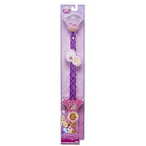 Light up the night sky with the Disney Princess Enchanted Lights Scepter, featuring Rapunzel, Belle and Cinderella! With 6 enchanted sounds and 2 magical light patterns, this scepter is the perfect accessory for any princess. Watch the beautiful lights illuminated through the magical prism gem!Feature