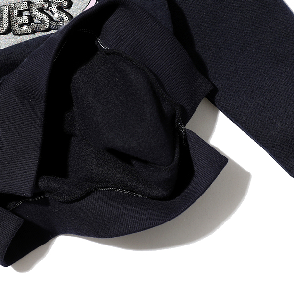 -홀로그램 메탈 나염과 로고자수 위 핫피스가 블링함을 주고 키치한 아트웍으로 마무리되었습니다.
