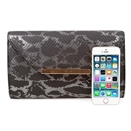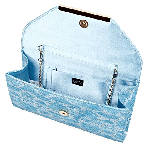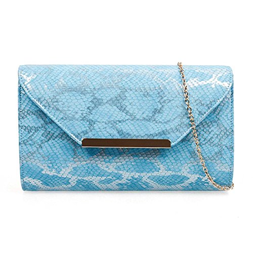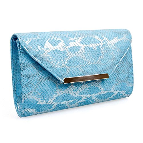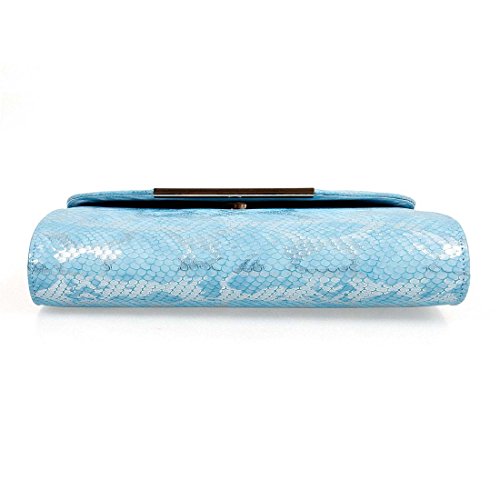 BMC Womens Ocean Blue Textured PU Faux Leather Snakeskin Animal Pattern Shiny Material Fashion Clutch Handbag