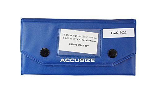 AccusizeTools - 25 Pcs/Set Radius Gage Set Fractional 1/64-1/2" Gages with Holder, #EG02-5021