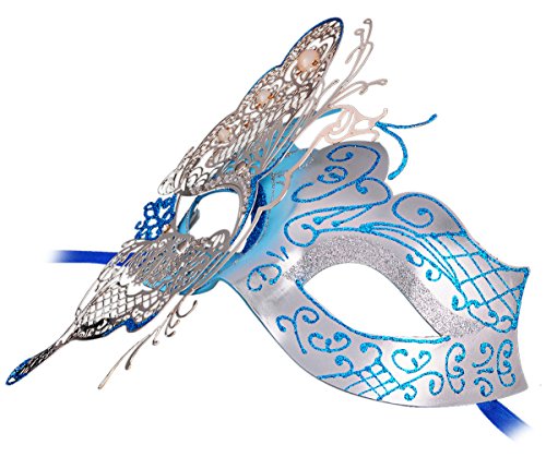-. Feature : COXEER BRAND PRODUCT made of high quality plastic and metal. It is a painted and beautifully detailed thick plastic piece over the eyes, with a firmly attached aluminum butterfly shape on one side. The aluminum wing has beautiful wisps around it that give it shine and movement, and sparkling crystals dotted along it that catch the light beautifully. / GORGEOUSLY AMAZING on the face with the right make up look. Santi ties are 17.5" long on each side, long enough to tie up well in the back. Some of the aluminum can be a little bent after shipping, but it's very easy to gently straighten out by hand. The plastic piece is inflexible, but the metal can be bent and adjusted. / ADJUSTABLE One size fits on face perfectly. It is accented with glitter highlights. The glitter is sparkly and catches people's attention. The back of the mask is soft against your skin and face and doesn't scratch. The glitter and paint do not get on your skin. / PERFECT for masquerades, balls, costume parties, carnivals, Mardi Gras and more. Sure to be the hit of your party / VARIOUS COLORS for you: blue, pink ,green and black. Colors shown in pictures may slightly differ from actual product due to lighting and color settings.
