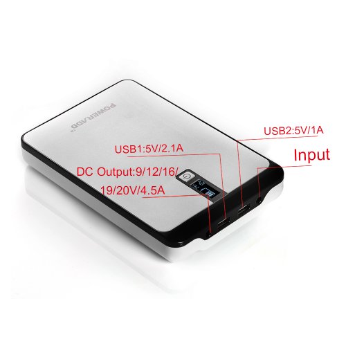 - Feature : Huge capacity of 32000mAh, Provides 1 DC output for your laptop, and 2 USB port for 5V USB-charged devices. / Various connectors cover major types of laptops and cell phones on the market, DC and USB outputs for charging a laptop and 2 5V USB-charged devices simultaneously, adjustable 5 voltage levels (9V/12V/16V/19V20V) suiting your needs for different laptop models (check detailed compatibility list below). / Stylish and slim aluminum-body ensures good heat dissipation,the smart digital display window makes it easy to regulate voltage and know how much source you've got left. It will automatically shutdown when short circuit or overload output happen to protect your devices. / Made of high quality reliable lithium-ion polymer battery cells, more than 500 recharge cycles during the course of its life. / Package Contents: 1* Poweradd™ Pilot Pro 32000mAh external battery / 3*Mobile phone connector / 10*Notebook connector / 1*USB spring cable / 1*DC cable / 1*AC Adapter / 1x User manual.
