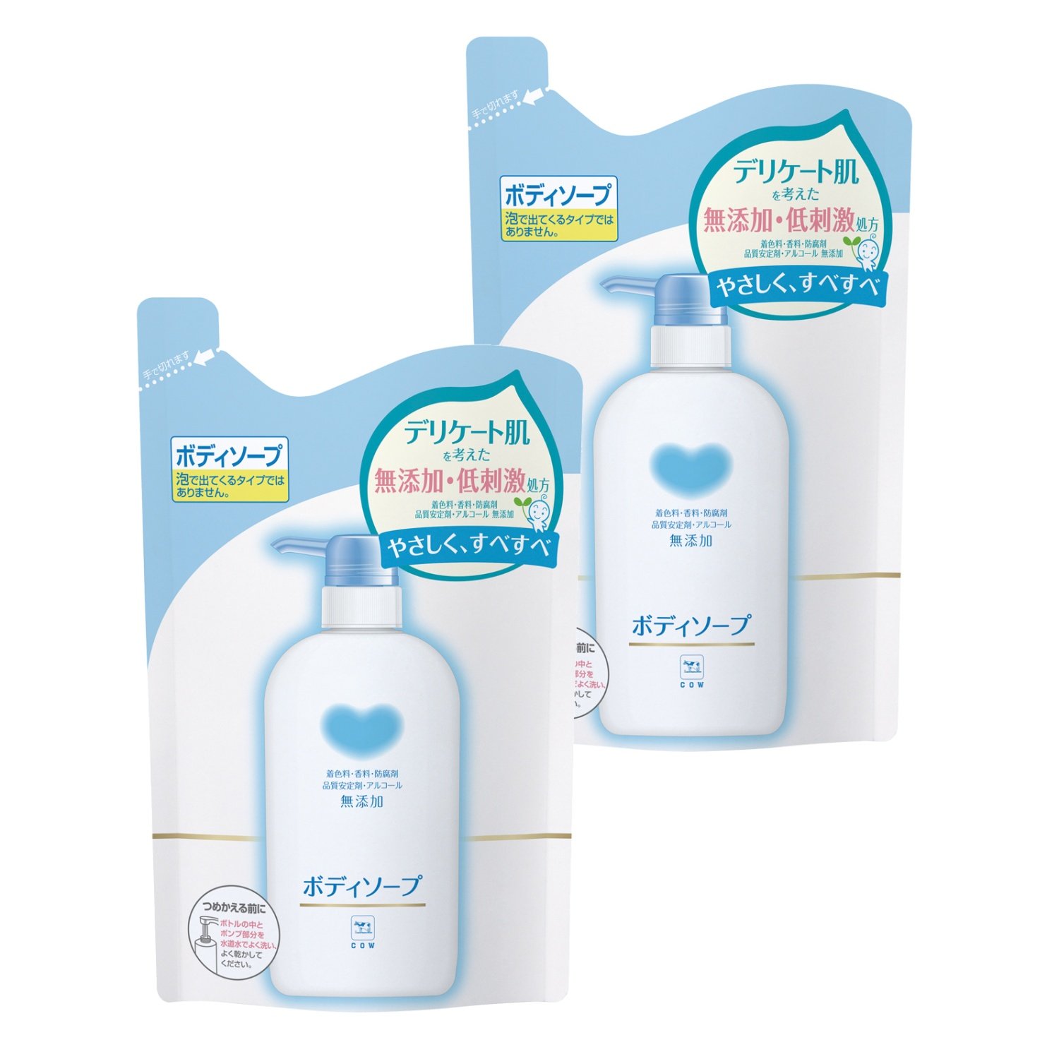 Cow brand additive-free body soap packed two-pack for replacement (400mL 2 pieces ×)