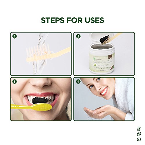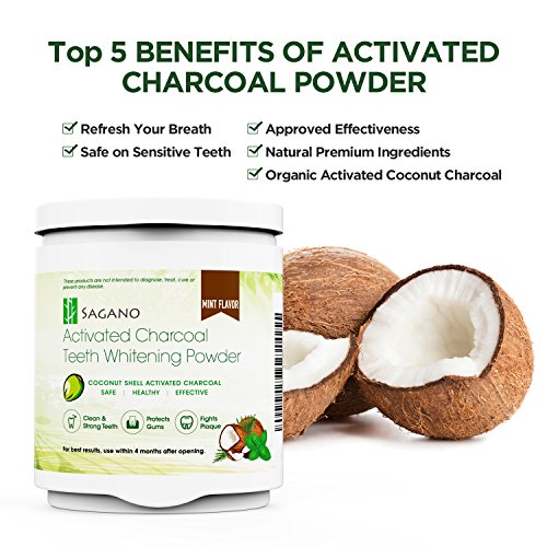 ✔100% TEETH WHITENING INDONESIAN COCONUT ACTIVATED CHARCOAL POWDER - Sagano Teeth Whitening Activated Charcoal Powder is purified from the premium quality Indonesian coconut shell, without using any chemicals or bleach. Teeth Whitening powder has no side effects and only requires 1-2 pinch of brushing per day to see quick results. 4-8 Months Supply!
