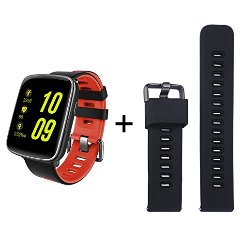 -. Feature : Compatibility: Android OS 4.4.4 or above, iOS 7.0 or above(requires iPhone 5 or above). / Extra Strap: Package inlcudes a Replaceable Silicone Strap in black. It will bring you more choice for the style of watch. / IP68 Waterproof: With IP68 water & dust protection, the watch can be used for shallow-water activities like swimming in a pool but not more than 3 meter. / High-quality configuration: Equipped with MTK 2502D CPU, 360 mAh High Volatage lithium polymer battery, 2.5D Arc HD Capacitive touch Screen, 1.54 inch display and 240 x 240 Resolution. / Multi-function: Not only a smart bluetooth watch, but can use as a Heart Rate Monitor, Sports Pedometer, Sleep Monitor, Camera&Music Remoter, Sedentary Reminder, Message Reminder, etc.