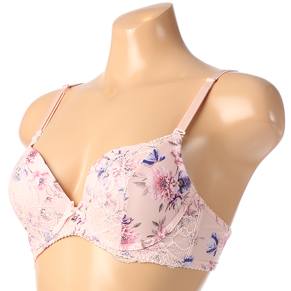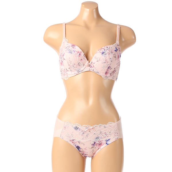 핑크컬러와 꽃프린트가 있는 여성 몰드브래지어 세트 입니다