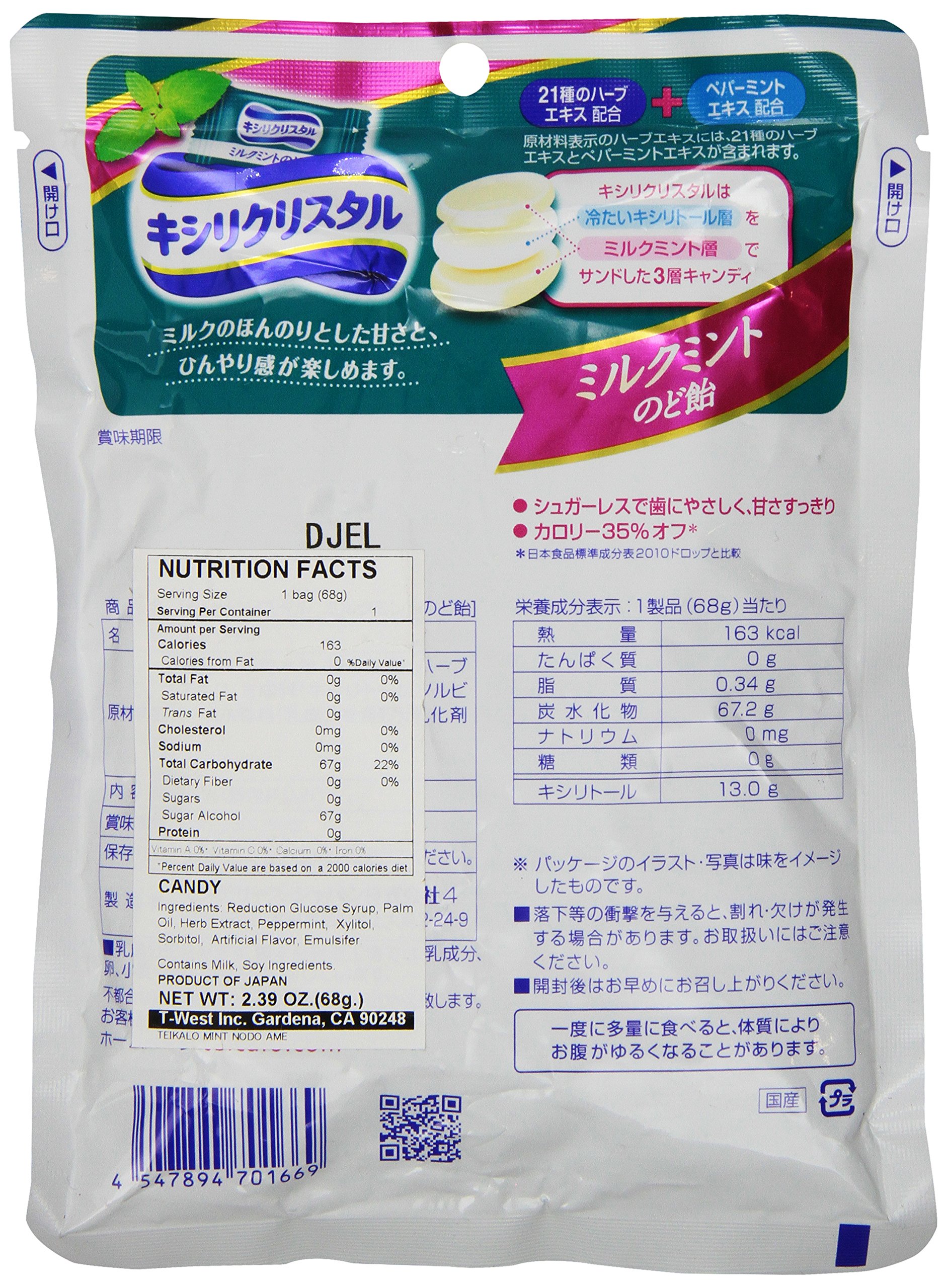 Teicalo Xylicrystal Nodoame Hard Milk Candy Mint Flavor 2.39 Ounce