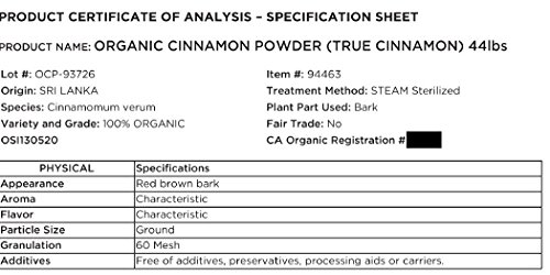 Our cinnamon is from the latest harvest and only imported in small quantities so you do not have to worry that the cinnamon has been sitting around for a long time in a warehouse or store shelf. Our USDA certified Organic Ceylon Cinnamon is the highest grade available , so we don`t have to dilute it with filler or any other types of cinnamon. Some competing Ceylon Cinnamon products are either stale tasting or have no flavor at all. The Ceylon Cinnamon is NON IRRADIATED, SALT FREE, NON GMO.