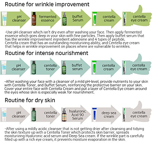 Containing core ingredients such as Centella Asiatica extract(49%) highly-enriched Asiaticoside,Asiatic acid and Madecassic acid. It delivers self-perpetuating energy to the skin around the eyes to help protect skin barrier and helps skin to be healthy of Itself. In addition,four peptide extracts vitalize wrinkles around the eyes and help improve skin elasticity of the area. It gently spreads aout and absorbed adherently to keep skin mosturizzed for a long time,and it is also suitabel for sensitive skin due to its combination of safe ingredients onlyFeature