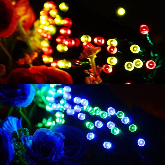 This wonderful string light illuminates during night, ideal for decorating your gardens, patio, lawn, porch, gate, yard, etc. Super long working time, it can continuously work more than 8 hours at night if the panel absorbs enough sunshine during day. Waterproof, suitable for indoor and outdoor use. Solar powered panel is stood by a 20cm garden spike. With ON/OFF, MODE switches. There is have 2 switch, one is Mode (Flashing mode convert switch), another is Power On/Off(After switch turned on, can automatic light control and charging).