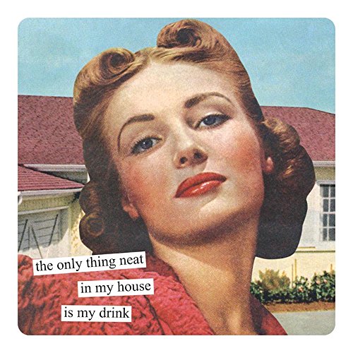 Anne Taintor Square Refrigerator Magnet - The Only Neat Thing In My House Is My Drink