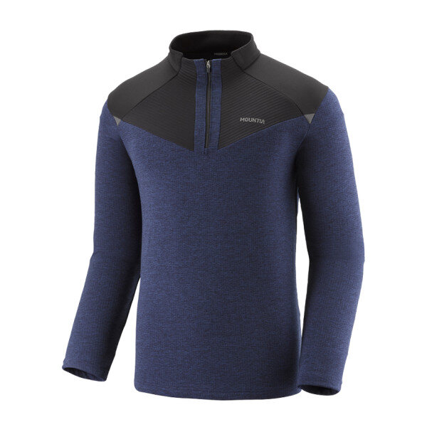 남성 겨울 티셔츠 입니다 멜란지 기모 원단에 조직감 원단을 믹스한 하이브리드 집업티셔츠입니다 가슴과 등판상부에 조직감 원단이 포인트인 트레킹스러운 제품입니다