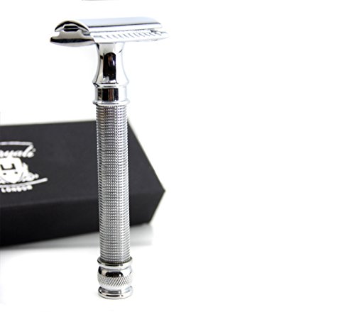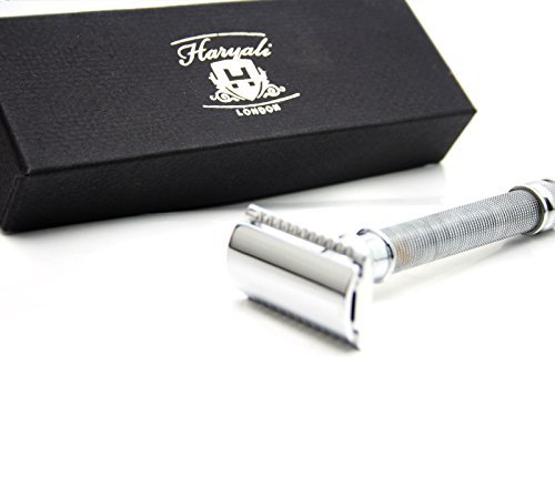 MEN'S DE SAFETY RAZOR IN SLIVER HANDLE - NEWLY DESIGNED BY HARYALI LONDON - No Blades Included