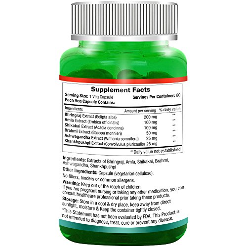 -. Feature : Combined with Best Natural Hair Ingredients, It offers a Unique Combination for all your hair Solutions / Provided Natural Ingredients and Support for Hair loss, Hair Growth, Dandruff, Hair Graying and other hair problems / Only pure ingredients, zero fillers, zero binders, zero artificial ingredients. / Directions: Take 1 veg capsule 1-2 times a day or as sested by your healthcare professional. / 60 VegCaps Per Bottle. 100% Natural.