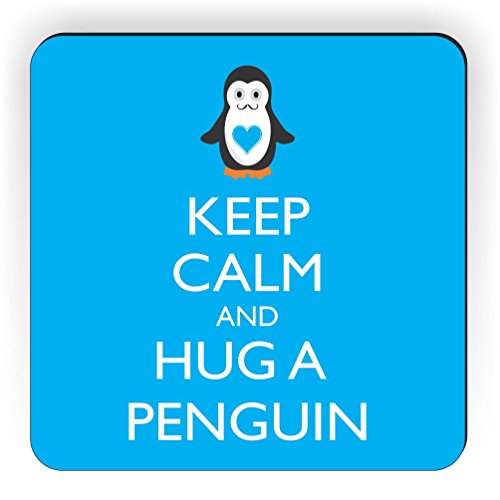 Rikki Knight Keep Calm and Hug a Penguin Design Square Fridge Magnet, Sky Blue