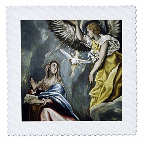 3dRose qs_82990_1 Grecos Painting, The Annunciation HI01 PRI0024 Prisma Quilt Square, 10 by 10-Inch