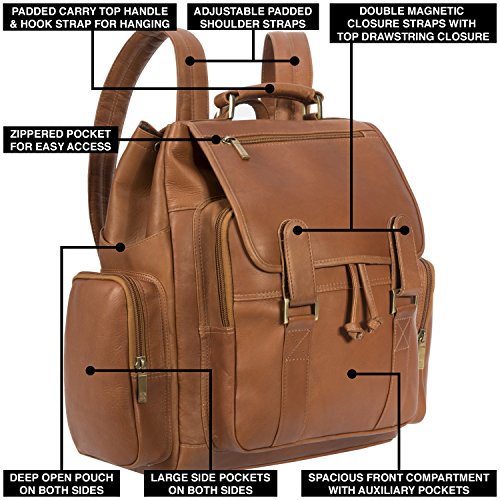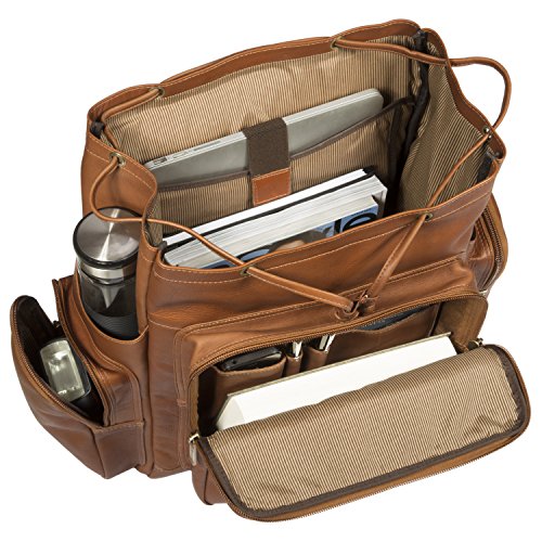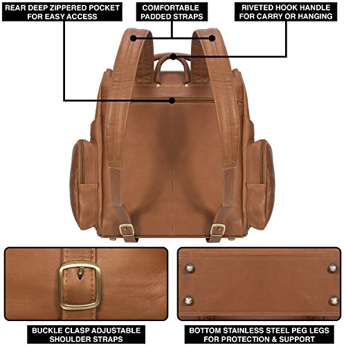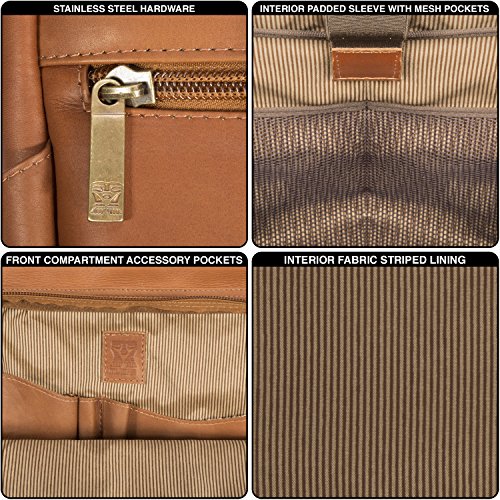 Studio : Muiska Publisher : Muiska Product Description The Brooklyn 17 inch Leather Laptop Briefcase by Muiska is a great backpack that offers a lot of space and versatility for all of your belongings. This backpack is handcrafted of 100% genuine Vaquetta leather. It can hold a 17 inch laptop and features a zippered compartment at the top, and a rear zippered compartment large enough to hold a magazine or two. Each side of the backpack has its own roomy pocket. The main compartment includes a laptop section, removable file divider, an accessory pouch, media pockets and more.
