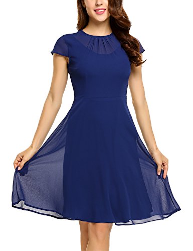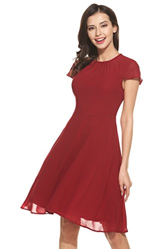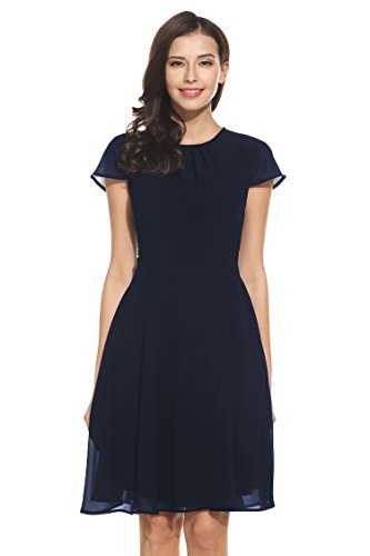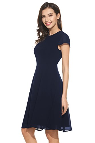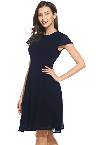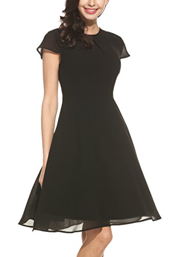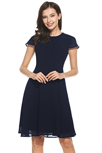 UNIQUE DESIGN: Fit & Flare, Cap short sleeve, Front pleated, keyhole back