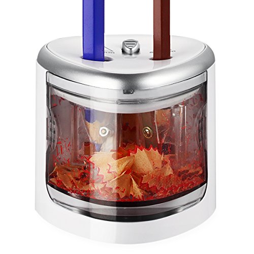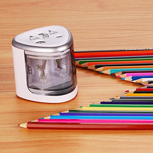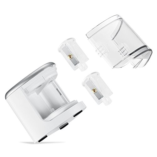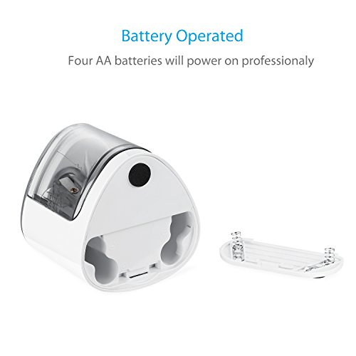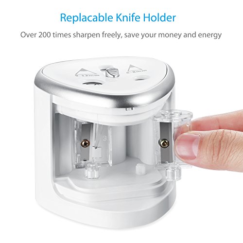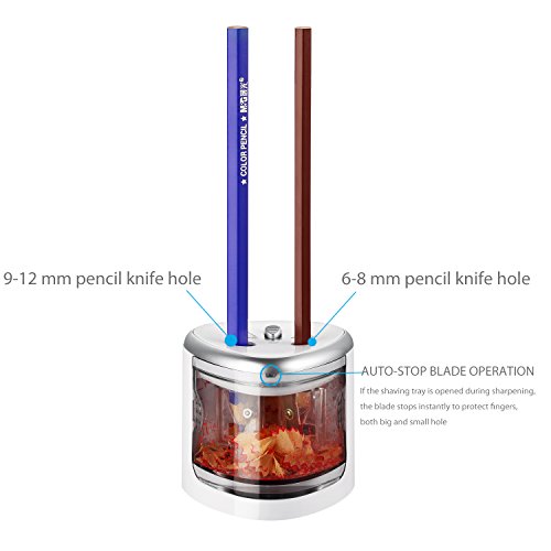 PROFESSIONAL DUAL KNIFE HOLE DESIGN: Years of experience told us we use mostly two sizes pencils in our whole life, one is 6-8mm, the other is 9-12mm. So we designed this battery operated pencil sharpener fits all size(*Batteries not included)