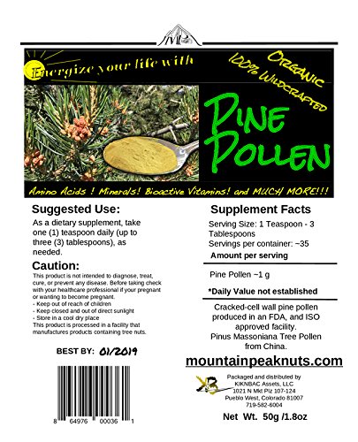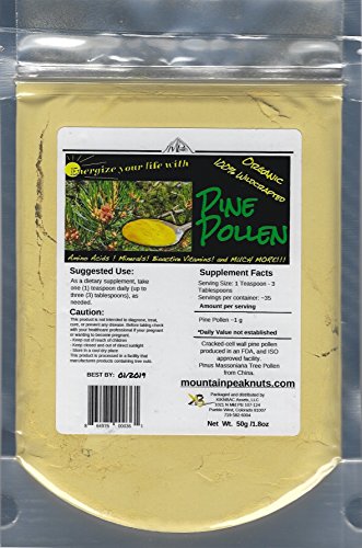 -. Feature : Known to: Improve immunity, fatigue, sexual function, prostate health, digestion, protect the heart, prevent vascular system diseases, pancreas function, increase appetite, overcome constipation, relieve menopause symp / Packaged and distributed in Colorado, USA / 100% Vegan, Paleo friendly, Gluten-free, NON-GMO, Zero sugar, No added salt, Preservative free / Organic pine pollen powder - Made from 100% wildcrafted cracked-cell wall Pine Pollen powder from the Pinus Massoniana tree located in Yunnan Province. Non-irradiated. Natural Pine Pollen. / No added grains or fillers. ISO, FDA, Organic