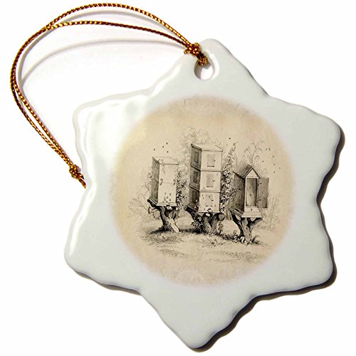 3dRose orn_62109_1 3 Wooden Beehives Snowflake Porcelain Ornament, 3-Inch