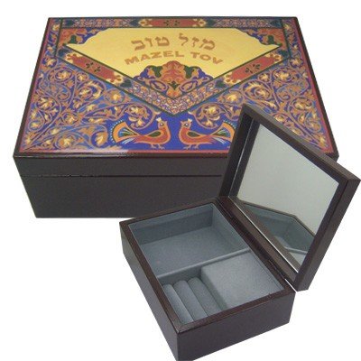 Wood Musical Hava Nagila Jewelry Box with Peacock and Flower Multicolor Design and Reflective Mirror Inside