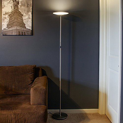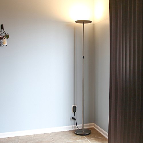 Brightech – SKY 30 Flux Edition – LED Torchiere Floor Lamp – Super-Bright 30-Watt LED – Adjust Color Temperature to 3 Levels of Brightness – Built-in Dimmer – Omni-Directional Head - Brushed Nickel