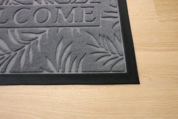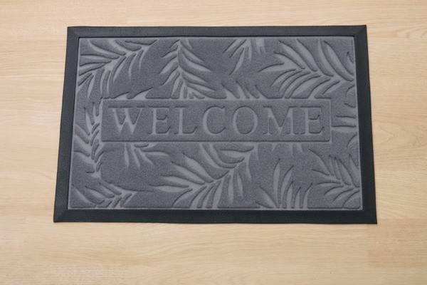 【商品名】玄関マット ウェルカムマット リーフ柄 屋外用 『ステイ』 グレイ 約40×60cm 洗える