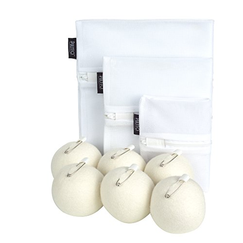 Studio : Pulito. Publisher : Pulito. Product Description ODORLESS, HYPOALLERGENIC, CHEMICAL FREE -Our dryer balls are odor free and hand made. -No added chemicals are used in the making of our premium dryer balls.Compared to dryer sheets, there is no contest -If family members have allergies to various laundry chemicals and other skin irritants, our dryer balls can provide much needed relief from these conditions EXCELLENT SOFTENING, REDUCED DRYING TIMES -Our wool ball weight and texture is very dense, unlike some dryer balls which are much too spongy. This increases resistance against clothing, therefore increasing the softening effect and decreasing drying time! ELIMINATE STATIC CLING -Attach one pin to each dryer ball. These pins will not come undone during the drying cycle. Pins are manufactured with eco-friendly ABS and fit perfectly on our dryer balls. THREE ZIPPERED VERY FINE MESH DRYER BAGS - No more annoying drawstrings getting tangled or coming undone -Your delicates and specialty fabric items are kept safe from stretching and snagging. -Opens across the entire top for easy in/out of items. -A fabric “bridge”: Ensures the zipper does not snag on other items in the load. GUARANTEE FROM PULITO. -Money back through Amazon if not 100% satisfied! -Or replacement product through Pulito ? Your choice -Customer Service online 24/7 with quick response to inquiries. Click “ADD TO CART” to purchase the 15 Piece Pulito Laundry Set today and start loving your clothes *Do not overload the dryer. Dryer balls need room to move around the load of laundry and each ball must have a pin attached. Use all six balls for maximum effect. 0