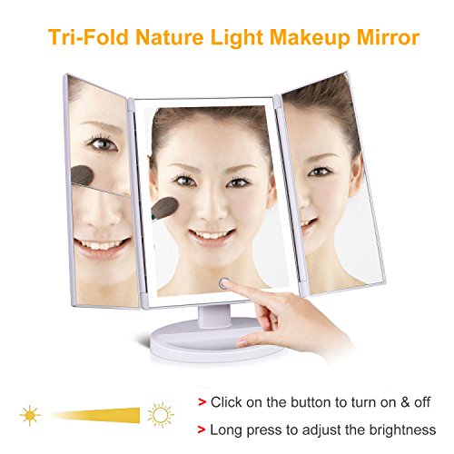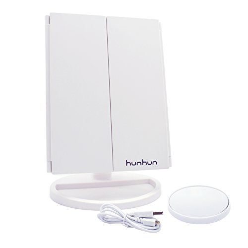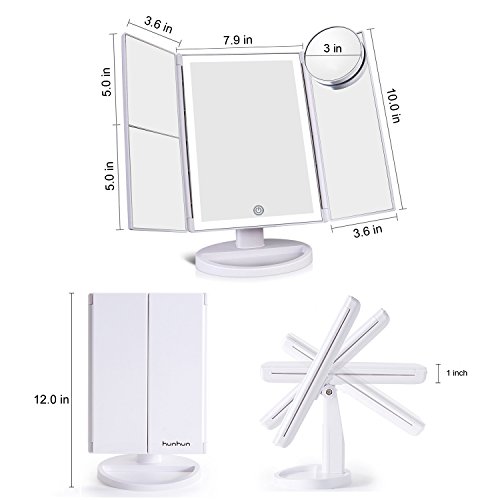 Hunhun Nature Light/Bigger Size Makeup Mirror,Tri-Fold Vanity Mirror, EYES PROTECTION,180° Adjustable Rotation, 10X/3X/2X/1X Magnification Mirror, Tabletop Makeup Mirror, Cosmetic Mirror