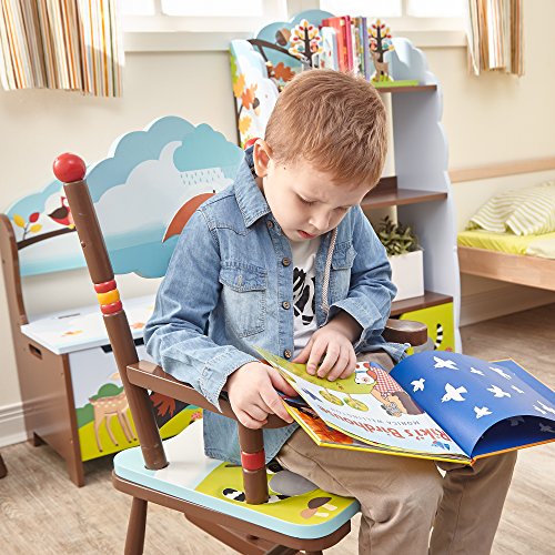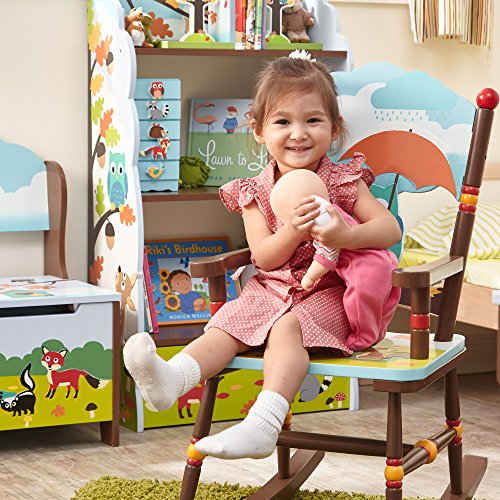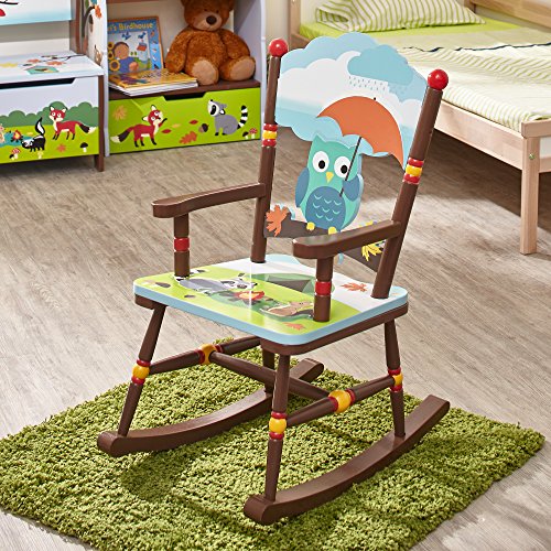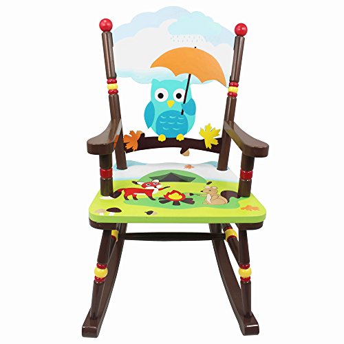 Studio : Teamson Design Corp - DROP SHIP Publisher : Teamson Design Corp - DROP SHIP Binding : Toy Product Description Sit back and relax in a sturdy wooden chair built for the toughest of kids, with the Enchanted Woodland Rocking Chair. Color woodland animals decorate the seat of the chair, and a bright and cheery owl adorns the back rest of the chair. Rock away into your thoughts on this fine chair today!. 0