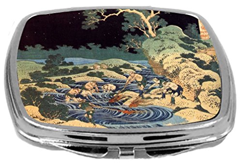 Rikki Knight Compact Mirror, Katsushika Hokusai Art Fishing with Torches, 3 Ounce