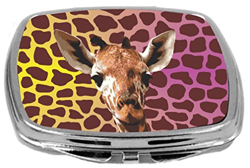 Rikki Knight Compact Mirror, Giraffe Close Up On Pink and Yellow Shades