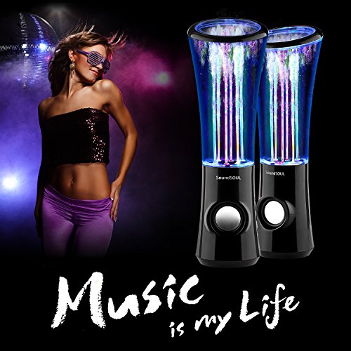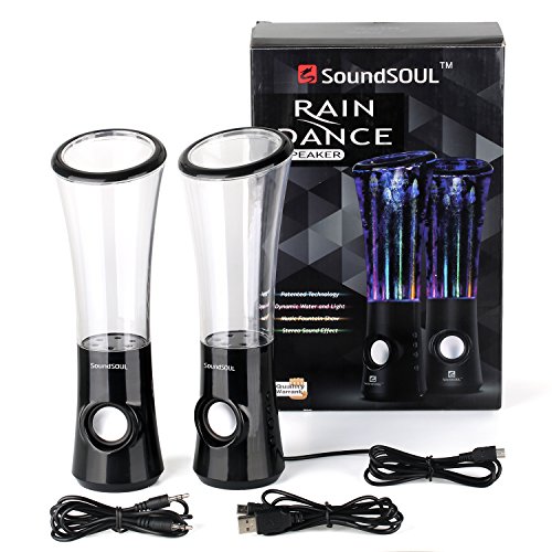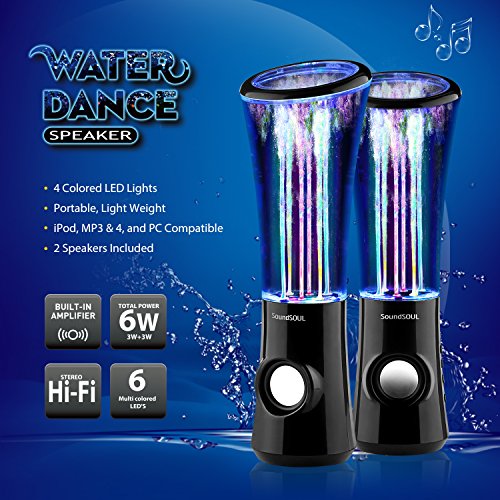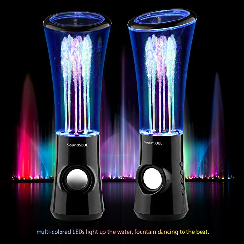 SoundSOUL Dancing Water Speakers LED Speakers Water Fountain Speakers Mini Misic Amplifier(6 Colored LED Lights) - Black