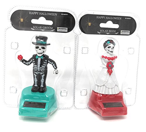 -. Binding : Toy -. Brand : J and G HOME -. EAN : 0796526344468 -. Feature : High quality. No batteries needed solar powered dancing skeleton groom and bride for halloween or over the hill (red). / Cute funny toy solar powered dancing skeleton groom and bride for halloween or over the hill (red) dancing all day at your window. / Great for children, young kid, teens and adults for fun toys in house, office, in car or every where have sun. / Best toys for have and collect make you smile and happy. / Best for gag gift and birthday day gift. -. IsAdultProduct : 0 -. Label : Momentum -. Manufacturer : Momentum -. ProductGroup : Toy -. ProductTypeName : TOYS_AND_GAMES -. Publisher : Momentum -. Studio : Momentum -. Title : Solar Powered Dancing Skeleton Groom and Bride for Halloween or Over the Hill (Red) -. UPC : 796526344468