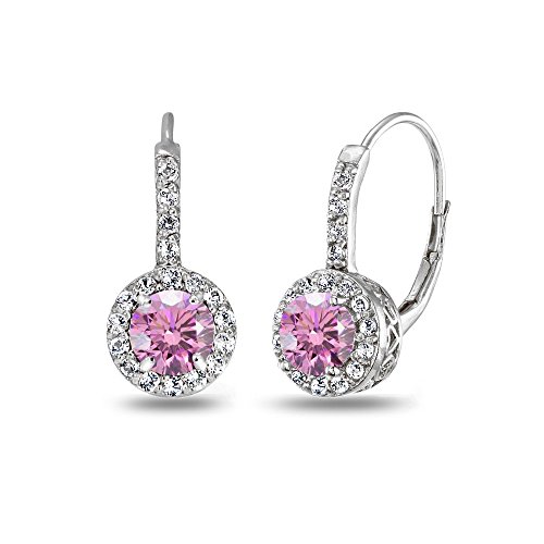 Sterling Silver Halo Leverback Drop Earrings created with Swarovski Crystals