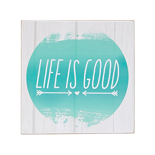 Life is Good Aqua Blue Green Pallet 8 x 8 Inch Wood Hanging Wall Plaque Sign