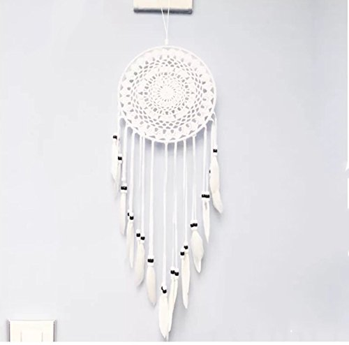 Boho Chic Bohemian Home Geometric Art Decor ,White Circle Dream Catcher ,Handmade Traditional Feather Wall Hanging Home Decoration Ornament Craft 8" Diameter 31.5" Length