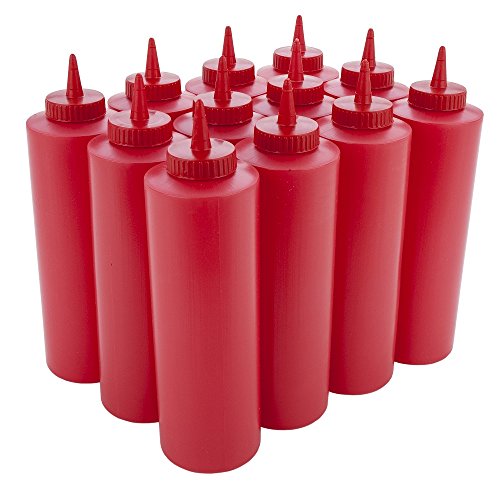 Alegacy 12-Pack 32-Ounce Squeeze Ketchup Bottles, Large, Red